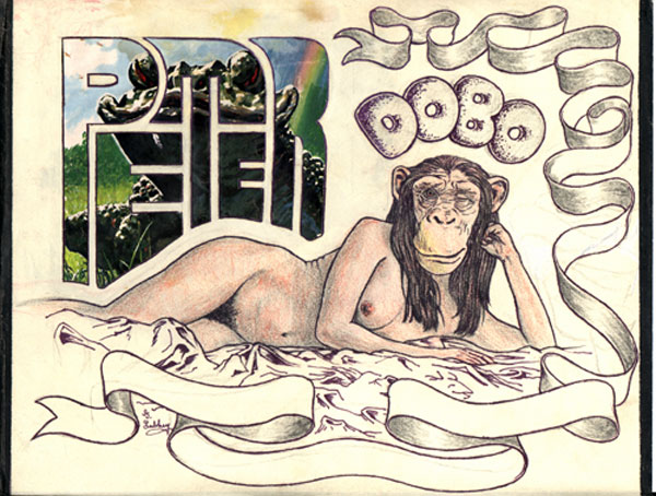 A promising young northend artist Garry Lubkey, casually created the above pencil crayon poster at an after the job party for the Peter Dobo Band. This impromptu poster was soon to become a fixture on the walls and ceilings of many city venues, high schools and rural dance halls, colleges and universities. This became a trend as many bands were encouraged to followed suit, before you knew it, the first of this city's very spectacular poster collages appeared in assorted venues following the Peter Dobo Band as some kind of musical right of passage. The postering went on in earnest, Bobby had troops of fans cover any and everything in sight. If you could tape it staple it stick it or wrap it, you saw a poster there. Soon Bobby designed 1/4 page handouts on card stock that could also be jammed in window frames doors car wiper blades and so much more. Very shrewd indeed since you could cover new advertising territory plus you got more than 4 times the coverage at the same printing price per page. All this was not without consequence. They would become the first band to be cited for inappropriate public display of nudity and littering, causing huge discussions regarding the redefining of civic regulations. In the end the establisnment threw their collective hands in the air in defeat. Bobby's advertising creativity and efforts paid off then and in the long run for all to follow, this is no longer considered much of an issue in today's postering world. At the time, even the powers that be had to recognize this young northender's ingenuity so after an initial wrap on the knuckles, Bobby made sure that only non-members do the postering, manufacturing or distribution thereof, that way the band could not be hassled charged nor fined when the posters went up, a logical practice used by many today, evolving into professional poster persons. Fans loved 'em, the parents hated 'em, the city was furious over the drug reference and the [gasp] classic nude art that they continued to described as litter, so in further response to the anal establishment, another casually created far more humourous poster was gingerly released.