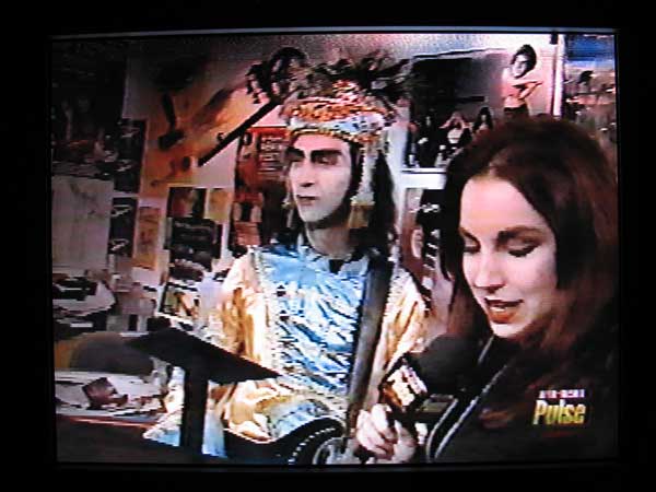 For the players out there, you may recognize the theremin being used as a circa 1969 Maestro Theremin which was modded for Bobby by Bob Moog back in the day. Not to dwell on too much on the exhausting days of preparation and first night opening, a TV crew covering an art gallery opening in the same building happened through the lobby convincing the guys to beetle over after their performances to do a quick late night guest shot at the station. Bobby cordially agreed with his standard provision - he got a tape. Here's the video pics, and they are way too cool in colour. |